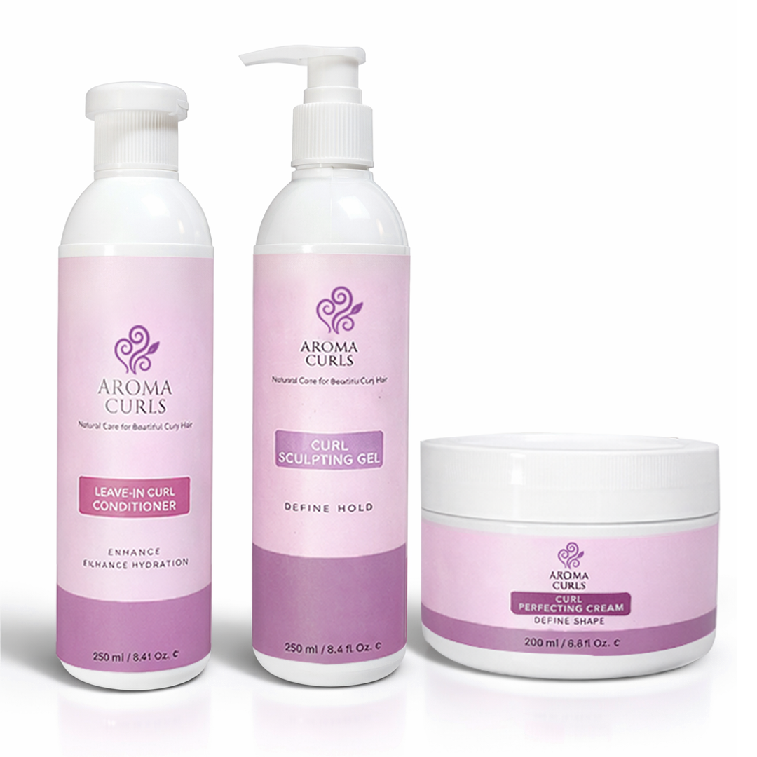Start with the Leave-In Curl Conditioner to hydrate, then apply Curl Perfecting Cream for definition, and finish with Curl Sculpting Gel for hold that lasts all day.